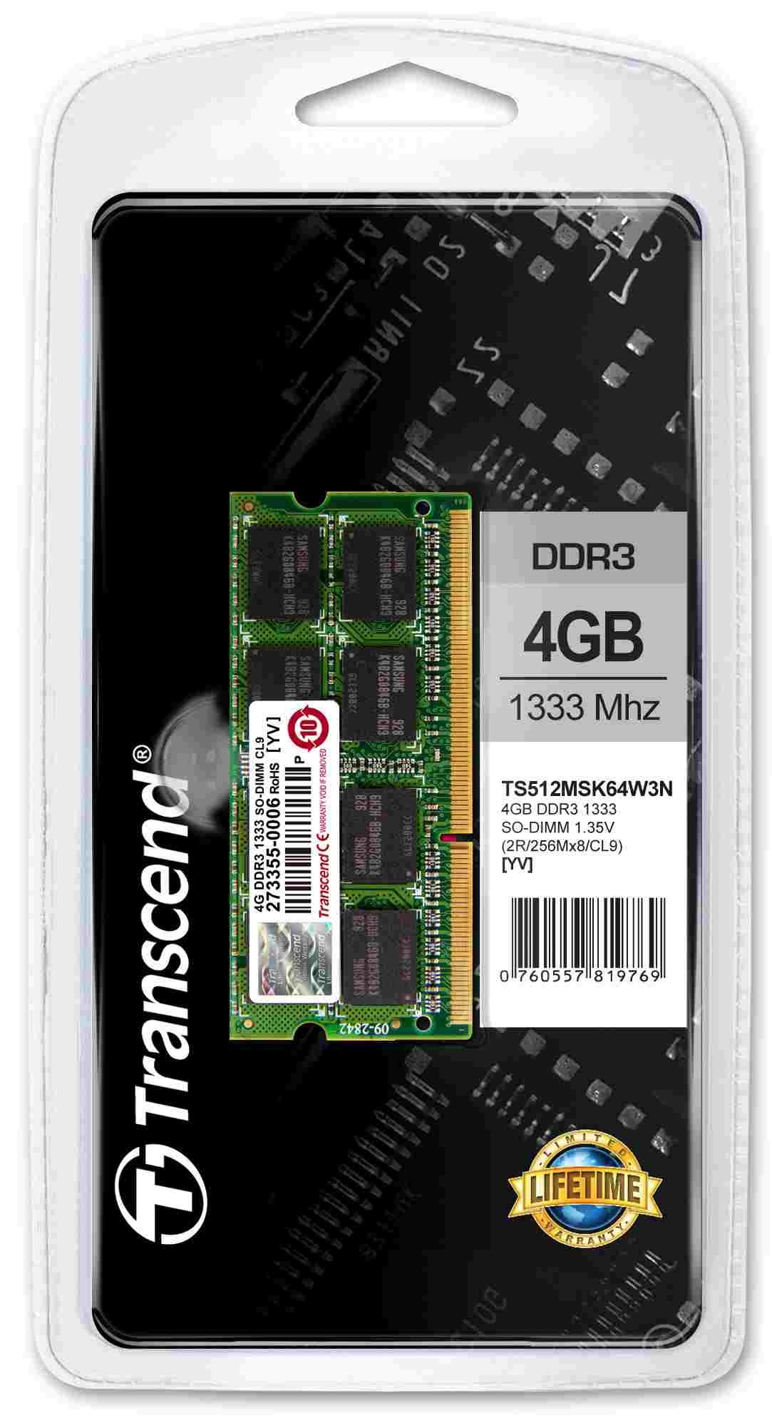 SODIMM DDR3L 4GB 1333MHz TRANSCEND 2Rx8 CL9, maloobchodný predaj