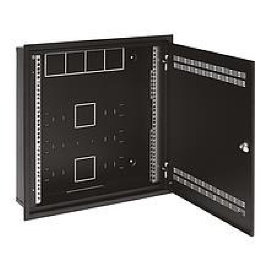 Rozvádzač SOHO LC-18 na stenu s lištami 2U, 4U a 11U, 550x550 čierna RAL9005 s rámčekom na zazdení