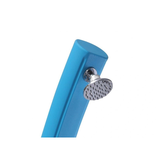 Designová solárna sprcha v modrej farbe, ktorá osvieži každú záhradu. Sprcha je vyrobená z kvalitného PVC odolného voči UV žiareniu, má zásobník o objeme 25 l a výšku 215 cm. Je vybavená praktickým kohútikom na oplach nohou. Sprcha vyniká svojím minimalistickým prevedením. Pripojenie na prívod vody je veľmi jednoduché pomocou hadicovej rýchlospojky (súčasť balenia).