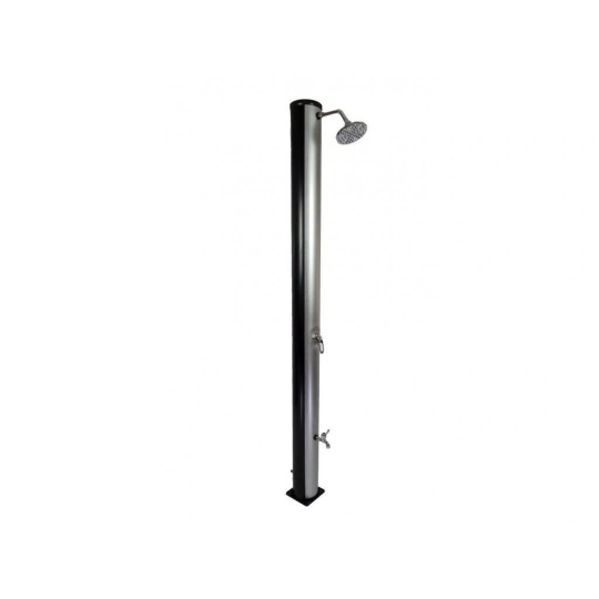Rodinami obľúbená solárna sprcha s XXL zásobníkom o objeme 40 l a veľkým sprchovacím hlavicou, ktorá zabezpečuje príjemné sprchovanie pripomínajúce ľahký letný lejak. Sprcha je vyrobená z kvalitného PVC odolného voči UV žiareniu. Elegantný vzhľad sprchy podčiarkuje čelná časť imitujúca nerez. Sprcha je vysoká 220 cm a je vybavená praktickým kohútikom na oplach nôh. Pripojenie na prívod vody je veľmi jednoduché pomocou hadicovej rýchlospojky (súčasť balenia).