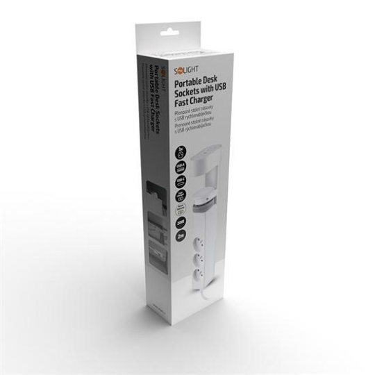 Solight 3z + USB A+C přenosné stolní zásuvky, 2m, bílá, USB rychlonabíječka 20W PD