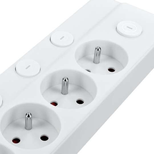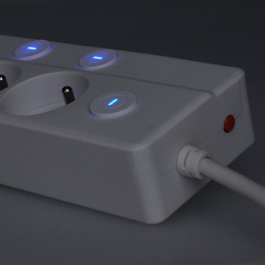 - Prodlužovací prívod so samostatnými vypínačmi pre každú zásuvku. Plus centrálny vypínač ovláda všetky zásuvky naraz. Resetovateľný istič pri preťažení zásuvkového poľa prerušuje napájanie. Potom je možné prodlužovací prívod opäť uviesť do prevádzky.