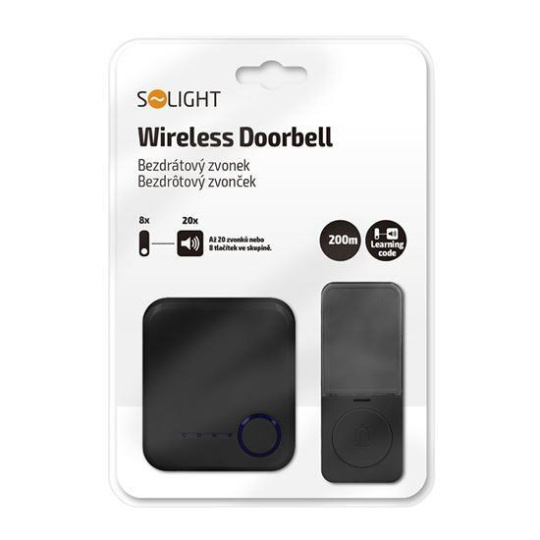 Solight bezdrátový zvonek, do zásuvky, 200m, černý, learning code