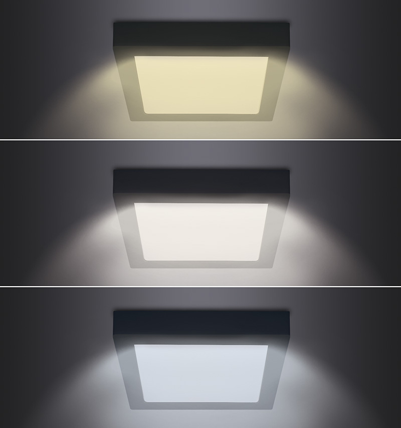 - panel je vybavený špeciálnym LED zdrojom s prepínačom, ktorý umožňuje nastavenie teploty svetla (chromatičnosti) 3000K, 4000K alebo 6000K.