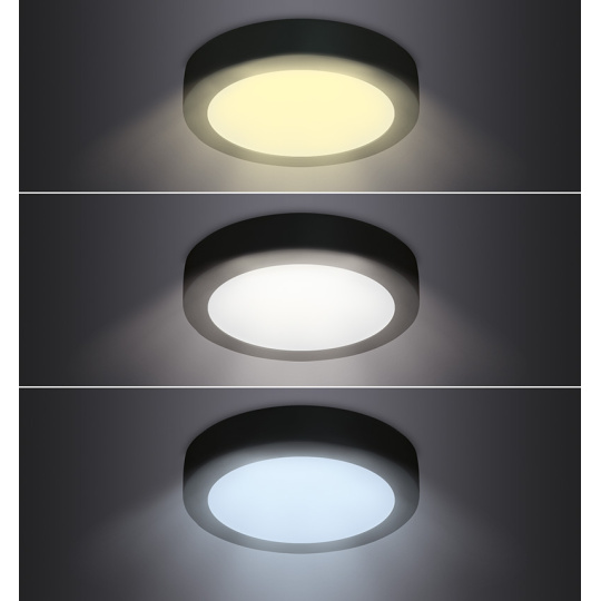 Solight LED mini panel CCT, přisazený, 18W, 1530lm, 3000K, 4000K, 6000K, kulatý, černá barva