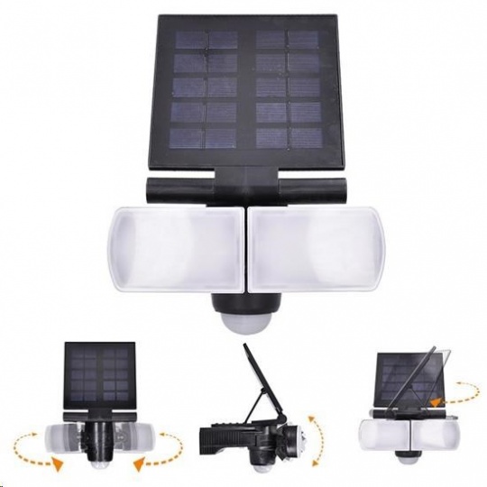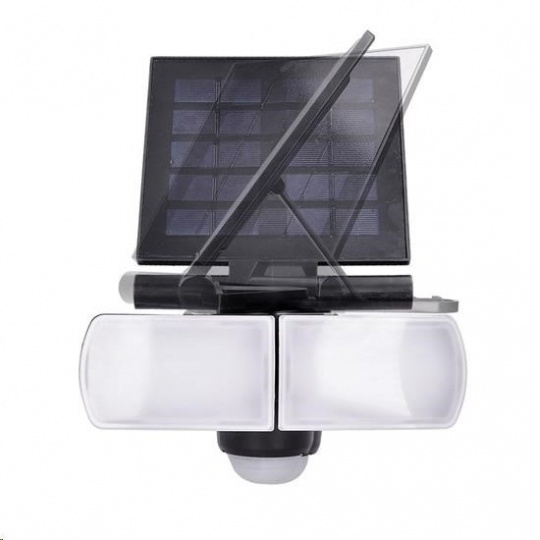 LED osvetlenie so solárnym panelom a nastaviteľným svetelným a pohybovým senzorom svetelné reflektory aj solárny panel možno horizontálne aj vertikálne natáčať a naklápať vhodné na osvetlenie vonkajších častí priestorov bez prívodu elektrickej energie (parkoviská, pergoly, kôlne, záhrady, vstupné brány a pod.) príkon: 8W svetelný tok: 600lm teplota svetla (chromatičnosť): 4000K (neutrálny biely) nastavenie času svietenia: cca 10s-60sek nastavenie svetelnej citlivosti: 10-1000lux uhol detekcie senzora: 110° detekčná vzdialenosť: cca 8m doba nabíjania batérie solárnym panelom: cca 8 hodín (v závislosti od svetelných podmienok) čistá doba svietenia: max. 1hod. batéria: 1x Li-Ion 3,7V 2000mAh vypínač: vypnuté (OFF) / automatické zapnutie (AUTO) farba: čierna