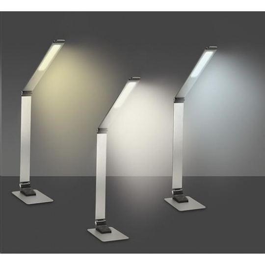 Solight LED stolní lampička stmívatelná, 11W, změna chromatičnosti, broušený hliník, stříbrná
