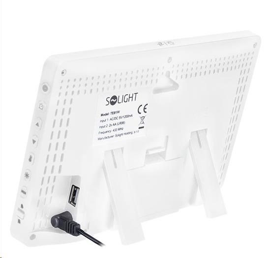 Solight TE81W meteostanice, extra velký barevný LCD, teplota, vlhkost, tlak, RCC, USB nabíjení, bílá