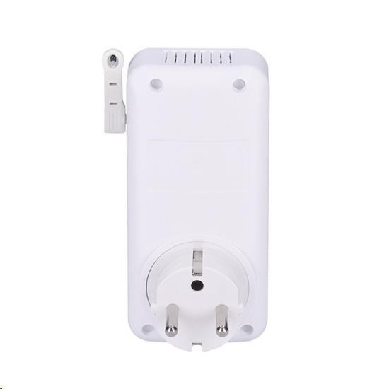 doplňková zásuvka pre GSM zásuvku DY10GSM rýchle a jednoduché spárovanie so zásuvkou DY10GSM zapínanie a vypínanie na diaľku použiteľné tam, kde je dostatočný signál pre mobilný telefón teplotný senzor na kontrolu a zisťovanie teploty možnosť nastavenia kalendára pre pravidelné spúšťanie teplotný alarm pri prekročení nastavených medzí teploty možnosť ručného zapnutia a vypnutia detská poistka LED indikácia dosah signálu na otvorenom priestranstve: 30m prenosová frekvencia pridavnej zásuvky: 433MHz napájanie: AC 230V, 50Hz prevádzková teplota: -10°C až +50°C max.: 3600W, AC 230V/16A farba: biela
