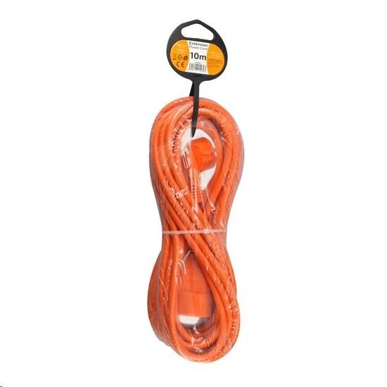 Oranžový predlžovací kábla s dĺžkou 10 metrov a jednou zásuvkou je ideálny na predĺženie elektrickej energie na záhrade alebo v dielni. Vďaka trom vodičom vrátane uzemnenia je vhodný na pripojenie akýchkoľvek zariadení s trojpólovou uzemnenou aj dvojpólovou neuzemnenou vidlicou prívodnej šnúry. Farebné odlíšenie od okolitého prostredia zvyšuje bezpečnosť pri práci.
