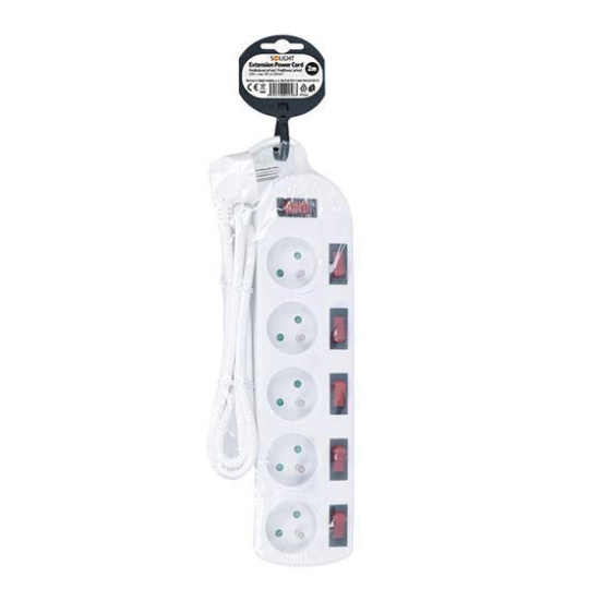 Solight prodlužovací přívod, 5 zásuvek, bílý, 6x vypínač, 2m