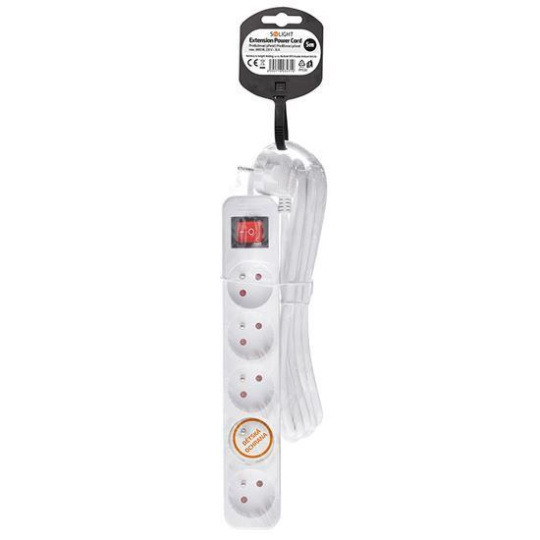 Solight prodlužovací přívod 5m, 5 zásuvek, vypínač, 16A/3680W, PVC, bílý