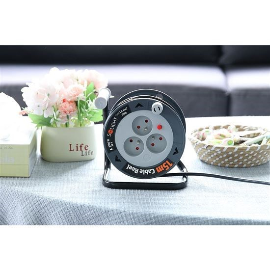 Prodlužovací přívod 15 metrů s navíjecím bubnem nabízí plnou využitelnost ve větších místnostech, na zahradě nebo na stavbě. Malé rozměry a dlouhý kabel oceníte všude tam, kde potřebujete pohotovost a mobilitu – není třeba ho skladovat v dílně nebo garáži.