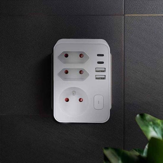 Tri zásuvky (1× 16 A + 2× 2,5 A) zvládnu celkovú záťaž až 3680 W a umožnia pripojiť bežné spotrebiče v obývačke, spálni alebo pracovni. Zásuvky sú navyše vybavené detskými poistkami, čo zabezpečuje bezpečný prevádzku aj v domácnostiach s deťmi. Vďaka dvom USB-A a dvom USB-C portom môžete pohodlne nabíjať až štyri zariadenia súčasne – s celkovým výkonom až 17 W. Perfektné pre všetku USB elektroniku.