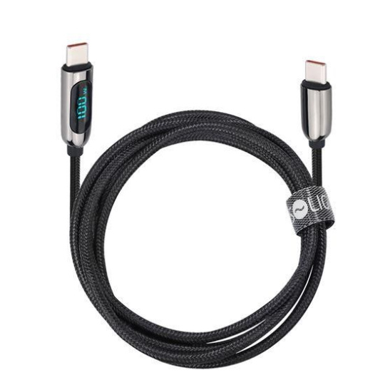 Solight USB-C kabel s displejem, USB-C konektor - USB-C konektor, 100W, 2m