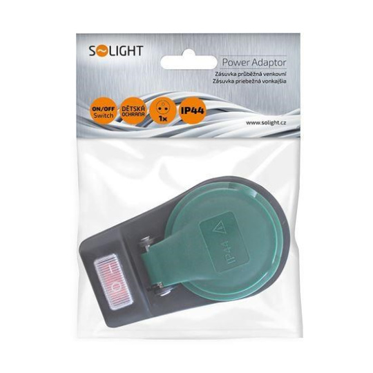 Solight zásuvka průběžná IP44, 16A, černá, vypínač