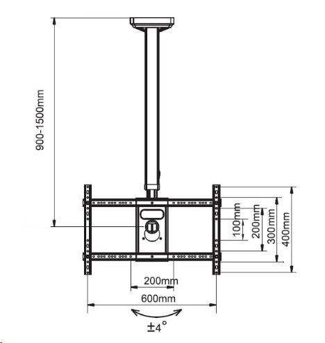 Technické údaje: nosnost 45,5kg na Tv 32" až 60" VESA standard 200x100 až 600x400 nastavitelná vzdálenost od stropu 900-1500mm nastavení sklonu obrazovky +2° / -20° otáčení tv do stran +/-360° korekce roviny obrazovky systém skrytého vedení kabeláže TOP kvalita krásný design barva černá záruka 5 let Stropní držák Tv Fiber Mounts SDT3260 podporuje VESA standarty: VESA 200x100 VESA 200x200 VESA 200x300 VESA 200x400 VESA 300x200 VESA 300x300 VESA 400x200 VESA 400x300 VESA 400x400 VESA 600x200 VESA 600x300 VESA 600x400.