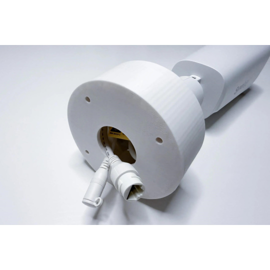 Plastový držiak je určený na upevnenie kamery Synology BC800Z na stenu alebo strop a to pomocou troch skrutiek. Držiak je vyrobený z PETG materiálu na 3D tlačiarskej tlačiarni, má bielu farbu.