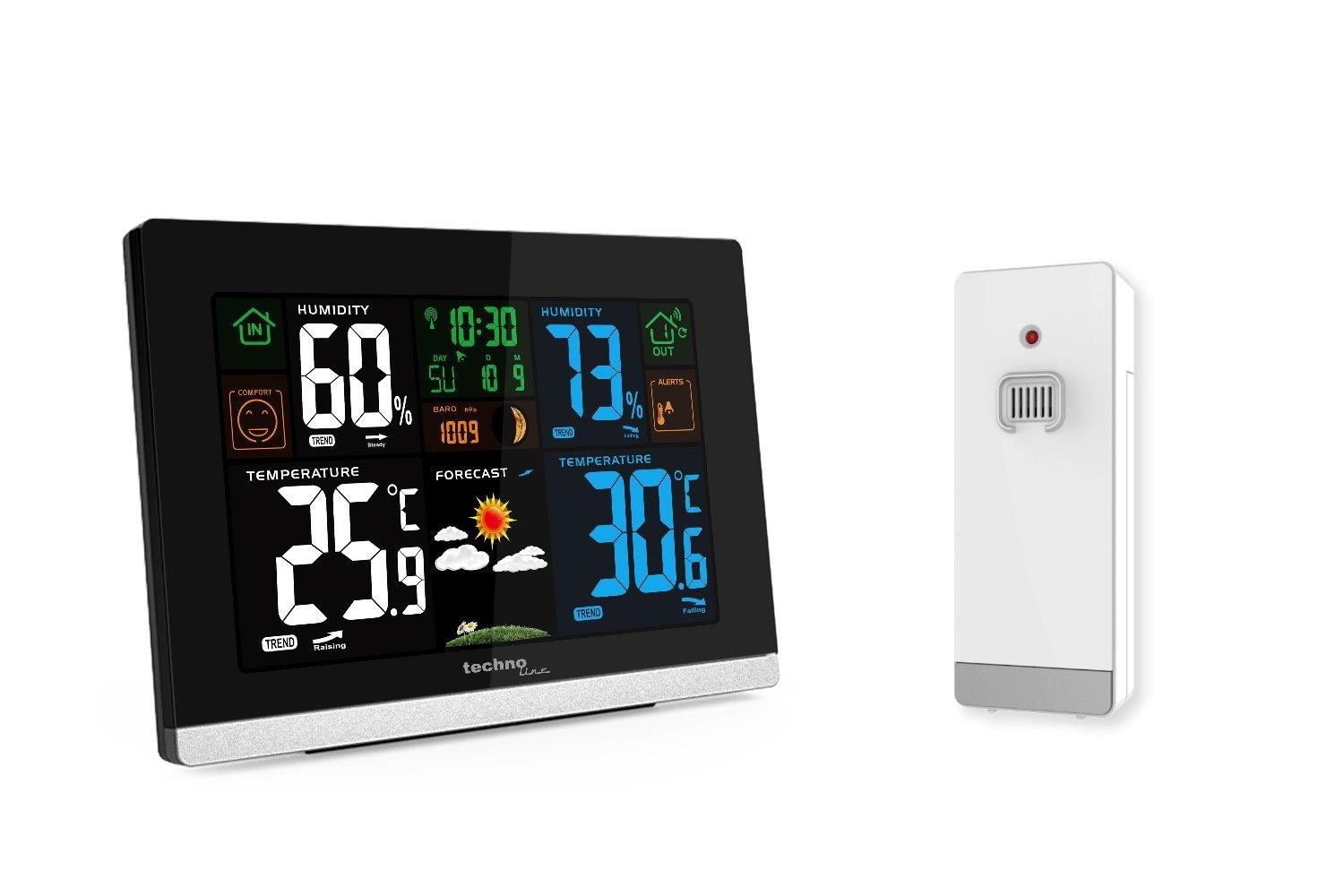 - farby displeja: čas, dátum zelená, barometrický tlak oranžová, vnútorná teplota a relatívna vlhkosť biela, vonkajšia teplota a relatívna vlhkosť modrá