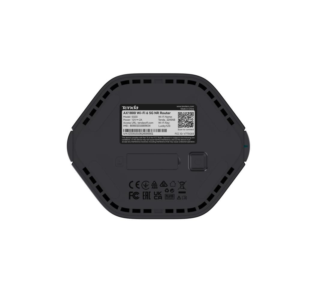 Tenda 5G03 - 5G NR/4G/3G Wireless AX1800 Router, WiFi 6, 1x GWAN/GLAN,1x GLAN, IPv6, VPN