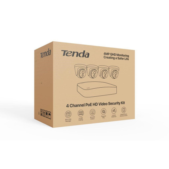 S kompletným setom Tenda K4P-4CR jednoduchým spôsobom vytvoríte kamerové zabezpečenie pre dom, chatu, firmu, sklad, obchod a pod. Prepojenie kamier a rekordéra je pomocou Ethernetového kábla a rekordér kamery pomocou PoE sám napája. Môžete vzdialene online sledovať všetky priestory, ktoré sú pokryté kamerami. Po jednoduchom zapojení a ľahkom nastavení je systém v plnom prevádzke a online dostupný. Set obsahuje 4 ks kvalitných 4MP kamier, ktoré sú už spárované s rekordérom.