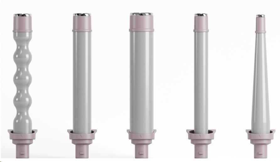 Kulma na vlasy Tesla ponúka päť vymeniteľných nástavcov rôznych veľkostí, vďaka ktorým je univerzálnym stylingovým nástrojom vhodným na tvorbu rôznych typov vĺn.