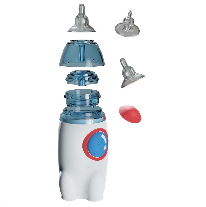 Hoci je odsávanie s TESLA Nasal Aspirator NA300 jemné a bezpečné, bude zrejme aj tak potrebné dieťa rozptýliť. Pozornosť pritiahne farebné svetlo prenikajúce cez modrý prstenec prístroja alebo desať melódií. Zaujme však aj svojím dizajnom. Vyzerá ako vesmírna raketa, a tak ju ani nemusíte po každom použití schovať späť do lekárničky. Ak zostane na policí vedľa postieľky, stane sa atraktívnym doplnkom detskej izbičky.