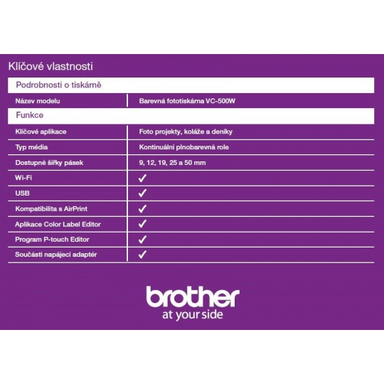 Tlačiareň štítkov BROTHER FOTO - VC500W - WIFI, USB, farebná bez atramentu - integrovaná rezačka