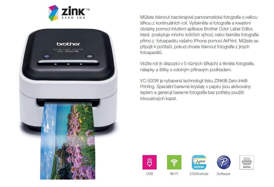 Tlačiareň štítkov BROTHER FOTO - VC500W - WIFI, USB, farebná bez atramentu - integrovaná rezačka