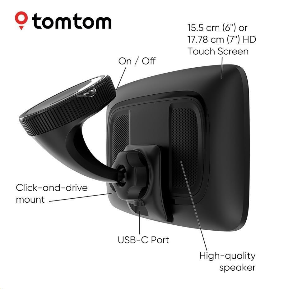 Prezrite si svoju trasu vo veľmi vysokých detailoch na 6" / 7" dotykovom displeji, ktorý sa pýši najlepším rozlíšením na trhu. A vďaka ovládaniu pomocou hlasových príkazov môžete zariadenie TomTom GO Expert Plus ovládať, aniž by ste museli zložiť ruky z volantu. Jednoduchý držiak Click-and-Drive navyše drží GPS navigáciu bezpečne na mieste.