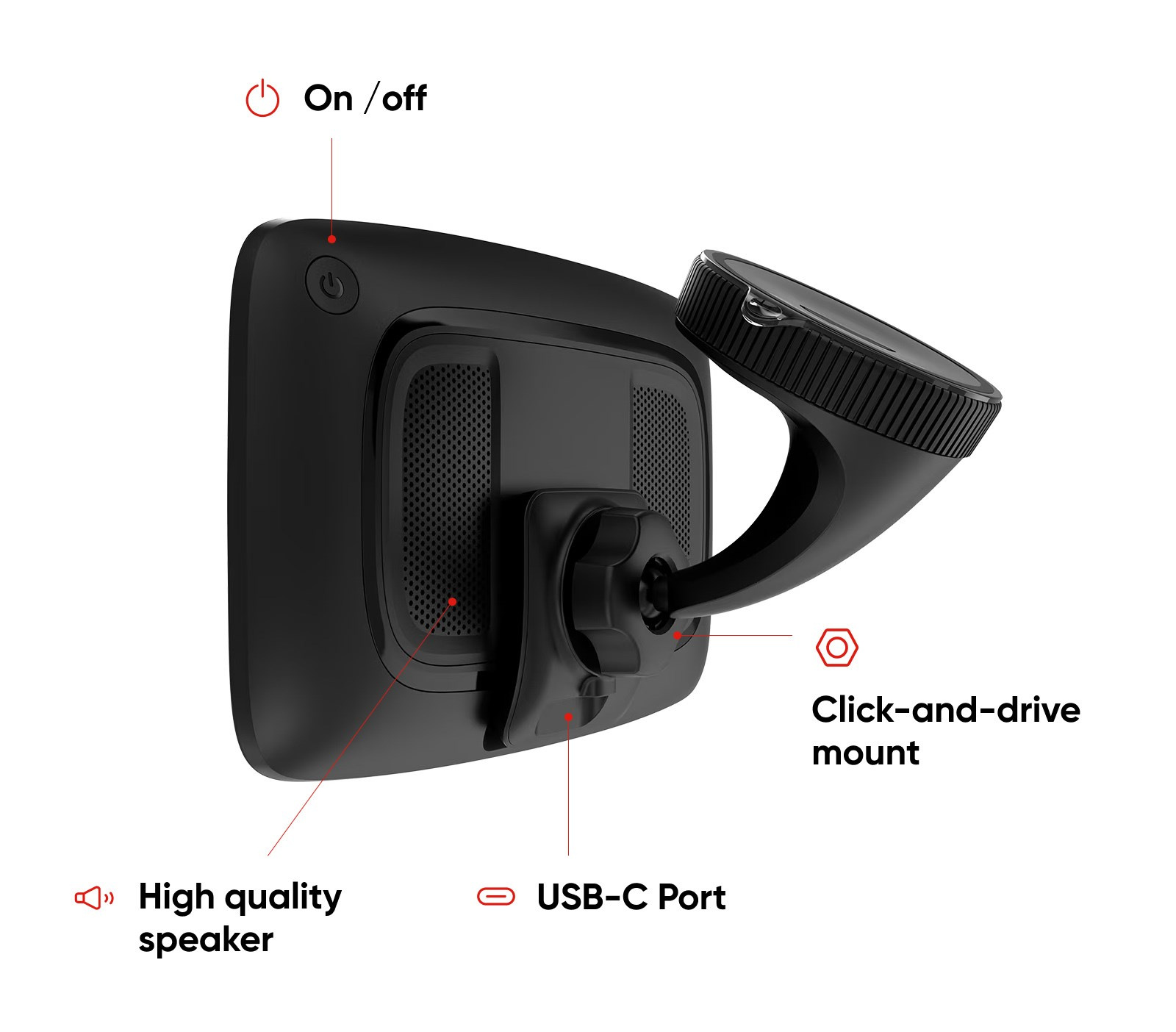- Aktívny magnetický držiak Click-and-Drive je súčasťou balenia