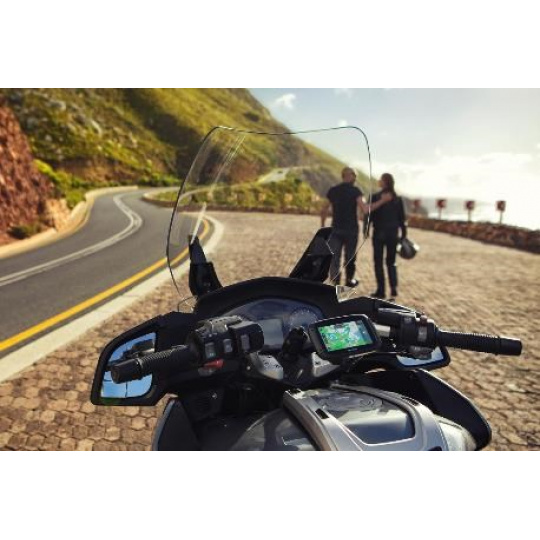 Otočte zariadenie do portrétnej polohy a uvidíte ďalšie zákruty, ktoré vás čakajú na trase, takže sa na ne môžete pripraviť. Inovatívny otočný držiak tohto navigačného zariadenia pre motocykle umožňuje jednoduché prepínanie medzi zobrazením na šírku a na výšku.