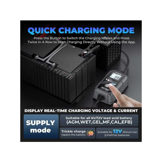 V režime inteligentného nabíjania vykoná TB6000Pro automatickú predbežnú detekciu batérie, akonáhle ju začnete nabíjať. Potom vám umožní znova otestovať batériu pomocou funkcie "View Report", ktorá vygeneruje predbežnú a následnú správu. Porovná namerané údaje vrátane CCA, vnútorného odporu, napätia a technického stavu batérie. Report v aplikácii jasne ukáže, o koľko sa batéria po nabití zlepšila.