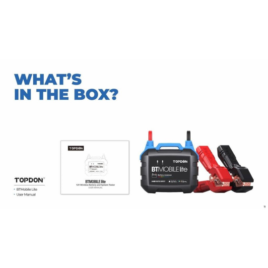 Tester TOPDON BT Mobile Lite je nepostrádateľnou pomocou pre všetkých majiteľov akéhokoľvek vozidla a nevyhnutnosťou pre všetkých majiteľov firemných vozových parkov. Ak chcete mať kompletný prehľad o vozidlách, battery tester BT Mobile lite je tou najlepšou voľbou.