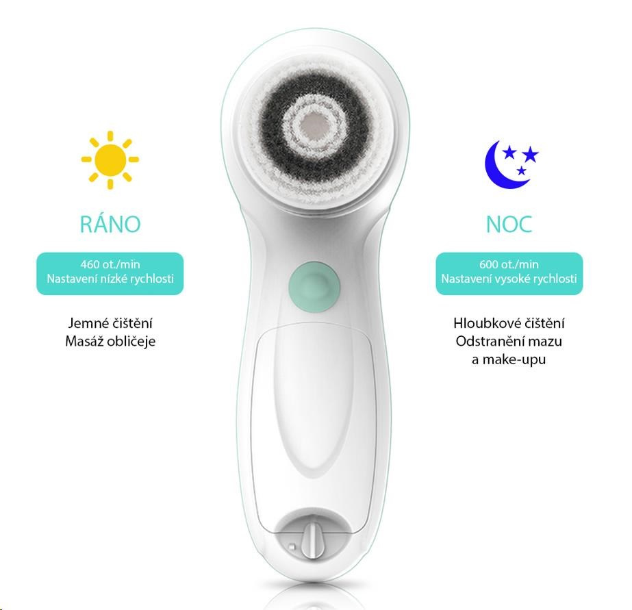- 2 pracovné rýchlosti - nízka rýchlosť pre jemné čistenie a vysoká rýchlosť pre hĺbkové čistenie.