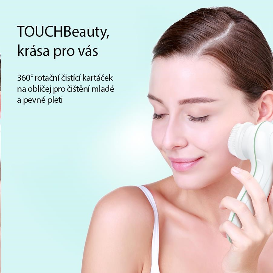 Elektrická čistiaca kefka TOUCHBeauty 0759 ponúka tri rôzne nástavce, ktoré odstraňujú make-up, hĺbkovo čistia pleť a pomáhajú s peelingom. Dve pracovné rýchlosti a veľká ergonomická rukoväť zaisťujú maximálny komfort pri každodennom používaní. Vďaka vodoodolnému prevedeniu je čistenie prístroja hračkou. Praktické puzdro sa hodí nielen pre ukladanie prístroje a nástavcov, ale aj pre cestovanie.