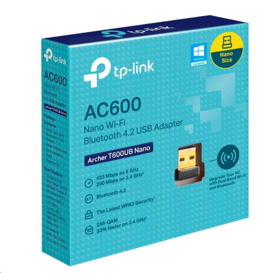| Obsah balenia | AC600 Nano Wi-Fi Bluetooth 4.2 USB adaptér Archer T600UB Nano Resource CD Rýchly inštalačný sprievodca |