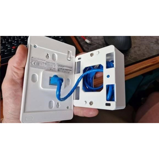 Plastový montážny box je určený na zakrytie káblov a pripevnenie nástenného WiFi AP EAP235-Wall, EAP615-Wall a EAP655-Wall od TP-Linku na stenu pomocou dvoch skrutiek. Držiak je vyrobený z materiálu PETG na 3D tlačiarni, je bielej farby.