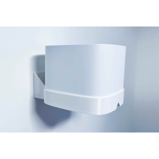plastový držiak na stenu pre TP-Link DHX510, HX520 na stenu a to pomocou dvoch skrutiek. Držiak je vyrobený z PETG materiálu na 3D tlačiarni a má bielu farbu.