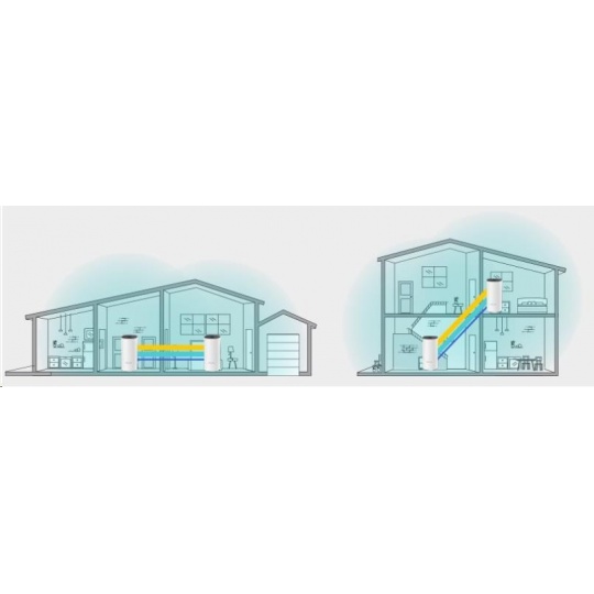 | WiFi Dosah | Rodinné domy 3-4 izby (3-pack) TP-Link Mesh technológia Voliteľná Ethernet backhaul spoločne spolupracujú na prepojení jednotiek Deco pre bezproblémové pokrytie 2× Antény (Vnútorné) Víceanténový systém na zosilnenie signálov v rôznych smeroch a na veľkých plochách Beamforming Zameriava bezdrôtový signál smerom k klientom pre rozšírenie WiFi dosahu |