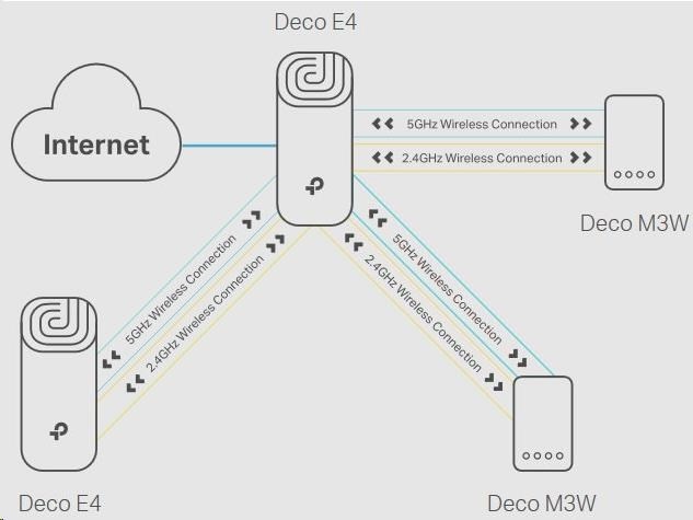 - Deco E4 poskytuje rýchle a stabilné spojenie rýchlosťou až 867 Mb/s a spolupracuje s hlavnými poskytovateľmi internetových služieb (ISP) a modemom.