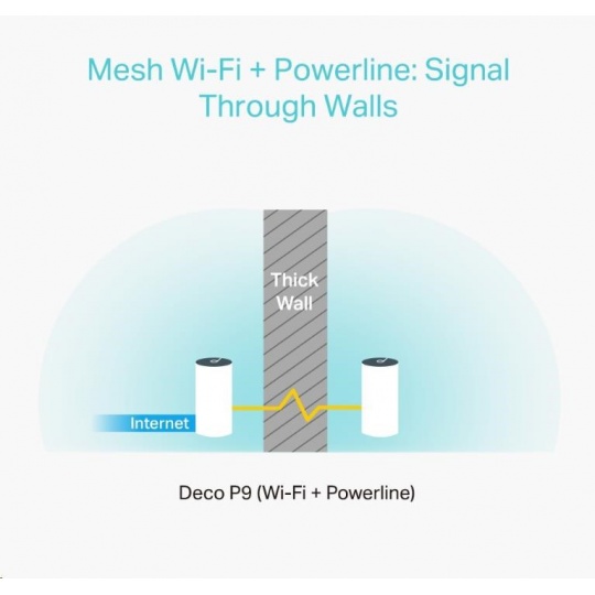 Deco P9 kombinuje duálne Wi-Fi a powerline pre vytvorenie silnejšej mesh siete. Technológia Powerline využíva elektrické rozvody vášho domu na vytvorenie silnejšieho prepojenia medzi jednotkami Deco tým, že znižuje dopad stien a iných prekážok na signál a poskytuje ešte vyššie rýchlosti siete a naozaj bezproblémové pokrytie .