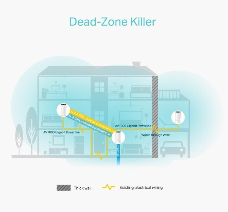 Deco P9 kombinuje duálne Wi-Fi a powerline pre vytvorenie silnejšej mesh siete. Technológia Powerline využíva elektrické rozvody vášho domu na vytvorenie silnejšieho prepojenia medzi jednotkami Deco tým, že znižuje dopad stien a iných prekážok na signál a poskytuje ešte vyššie rýchlosti siete a naozaj bezproblémové pokrytie .
