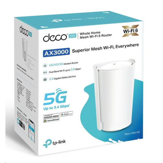 TP-Link Deco X50-5G (1-pack) WiFi6 Mesh (AX3000,2,4GHz/5GHz,1x2,5GbELAN/WAN,2xGbELAN/WAN,4G LTE,5G,+1xnanoSIM)