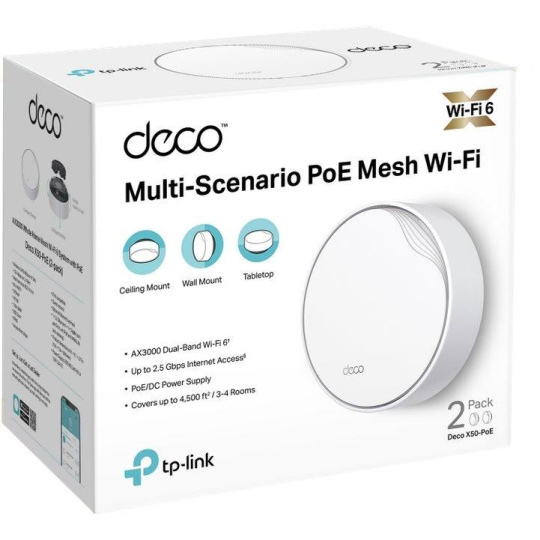 TP-Link Deco X50-PoE (3-pack) WiFi6 Mesh (AX3000,2,4GHz/5GHz,1x2,5GbELAN/WAN,1xGbELAN/WAN,1xPoE)