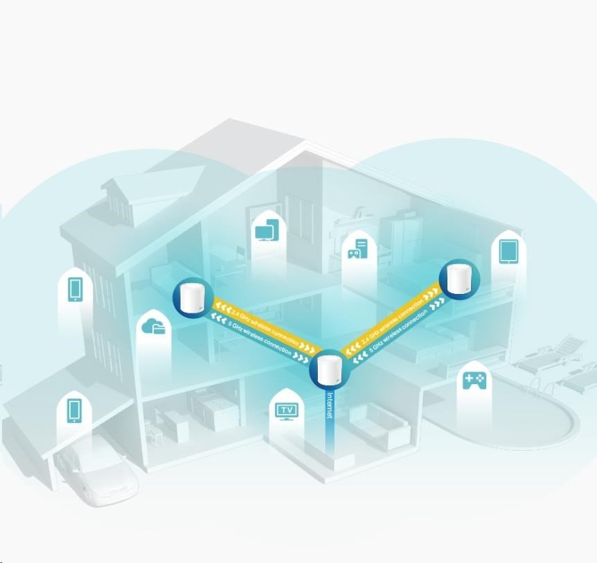 - Jedna zjednotená sieť - Viac jednotiek tvorí domácu sieť, ktorá automaticky vyberie najlepšie spojenie, keď sa pohybujete po domácnosti.