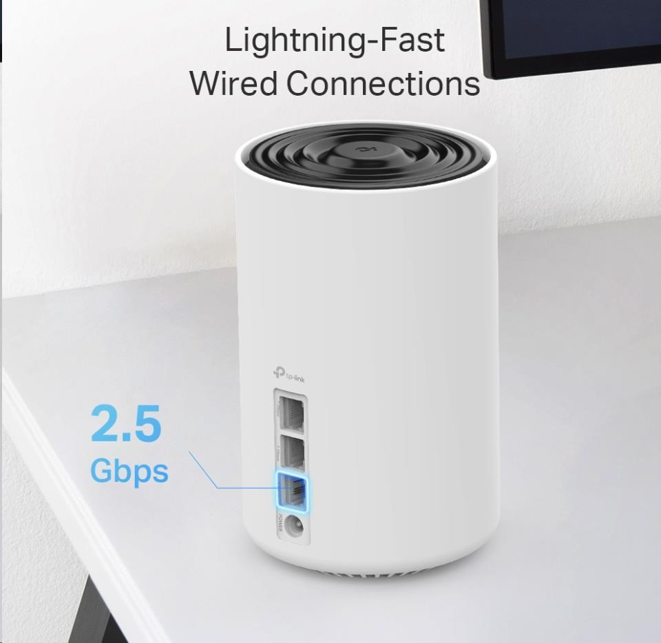 | Ethernetové porty | 1× 2.5 Gbps port + 2× Gigabitové porty *Na Deco jednotku Podporuje WAN/LAN automatické rozpoznanie |