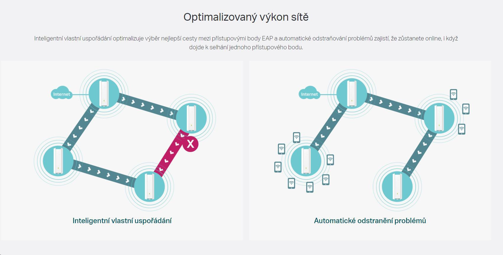 - Technológia Omada Mesh: Umožňuje bezdrôtové spojenie medzi prístupovými bodmi na získanie rozšíreného dosahu a flexibilného nasadenia.