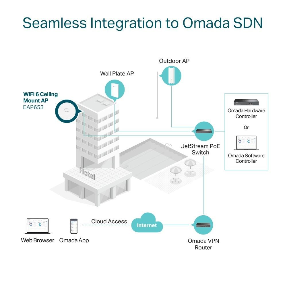 TP-Link EAP653(5-pack) OMADA WiFi6 AP (AX3000,2,4GHz/5GHz,1xGbELAN,1xPoE-in)