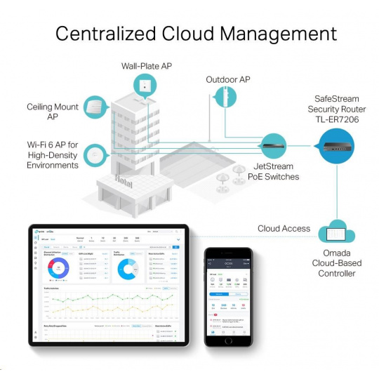 - Centralizovaná správa - Cloudový prístup a aplikácia Omada pre maximálne pohodlie a jednoduchú správu.